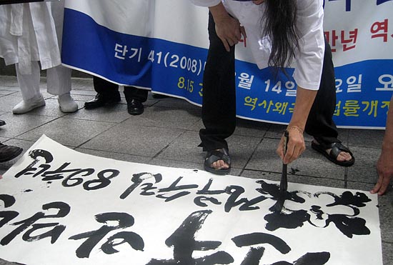 한단연에서 활동하고 있는 배희권 화백은 정부의 '건국60주년 기념사업' 집행 중단을 촉구하며 흰색 화선지에 '건국 반만년, 정부수립 89주년'이라는 글씨를 쓰기도 했다.