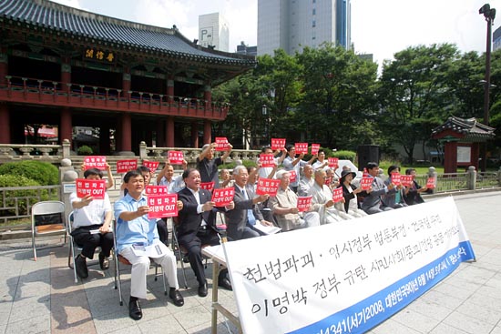 이들은 기자회견문을 통해 "이명박 정부의 건국 60주년 운운은 3.1운동의 정신과 항일독립운동의 역사적 정체성을 단절시키는 것이며, 나아가 '유구한 역사와 전통'의 대한민국을 미군정 3년에 의해 수립된 60년짜리 초라한 신생국가로 전락시키는 것"이라며 "헌법파괴 행위"라고 비난했다.