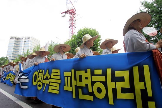 불자들은 이명박대통령의 공개사과와 어청수 청장의 사퇴를 촉구했다.[사진-통일뉴스 조성봉 기자]