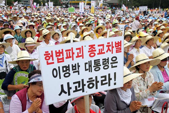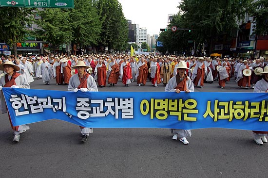 전국에서 올라온 불자들은 이명박 대통령의 '종교편향과 독선'을 규탄하며 공개사과를 요구했다. [사진-통일뉴스 조성봉 기자]