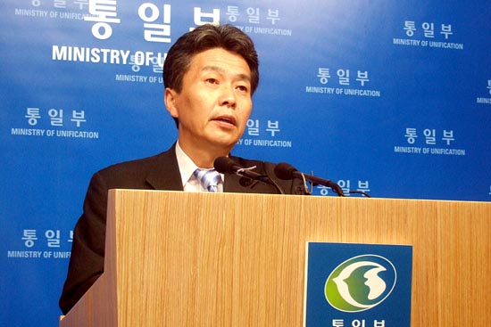 그러나 11일 오전 10시 30분 서울 세종로 정부종합청사 신관 제2브리핑룸에서 정부를 대표해 기자들 앞에 선 김호년 통일부 대변인은 “아직까지 확인된 내용은 없”다고 한발 물러선 것이다. “김정일 위원장이 현재 예를 들어서 기자들이 많이 관심을 가지고 계시는 다음 상황에 대한 객관적인 증거가 없다”는 것이다.