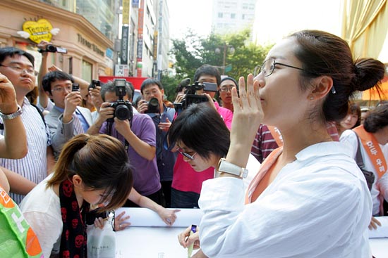 지나가던 시민들은 서명운동에 적극적으로 참가했다. [사진-통일뉴스 조성봉 기자]