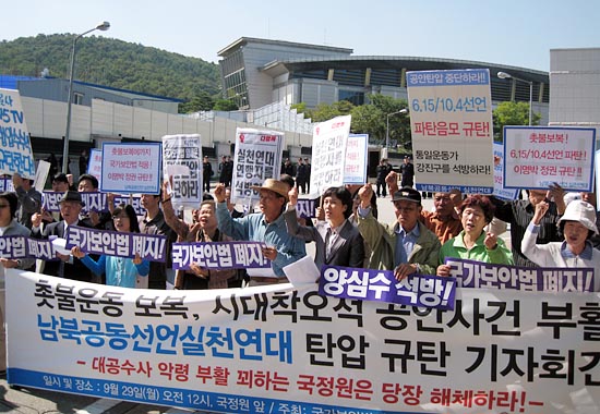 정광훈 한국진보연대 상임공동대표도 "국가보안법을 가지고 국민을 다스리는 것이 필요한 것이냐"며 "구시대적 악법인 국가보안법을 빨리 없애고 국정원은 경제를 위해 세계 각국의 많은 정보를 파악하는 데나 힘쓰기 바란다"고 충고했다.