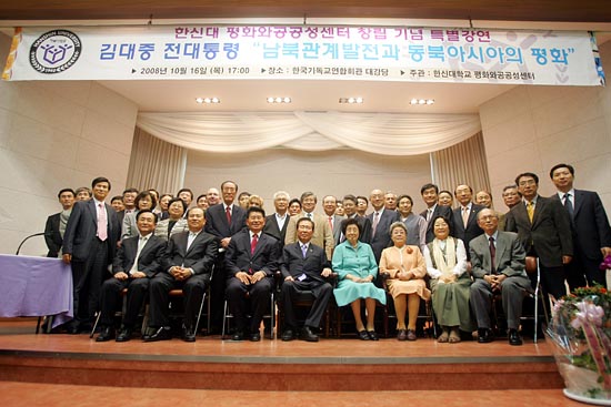 김 전 대통령은 이날 오후 6시 서울 종로 한국기독교연합회관 대강당에서 열린 한신대 '평화와 공공성 센터' 창립기념행사의 기념강연을 통해 이같이 말하면서, "지금 정부는 남북대화를 열지 못해서 국제적 흐름에서 소외된 처지에 놓여 있다"며 "남북대화는 시급히 재개되어야 한다. 그렇지 않으면 고립과 소실을 면치 못할 것"이라고 강조했다.