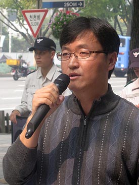 집회가 끝나고 유영재 평통사 정책실장과 이영 민가협 상임의장은 항의서한을 미 대사관에 전달했다.