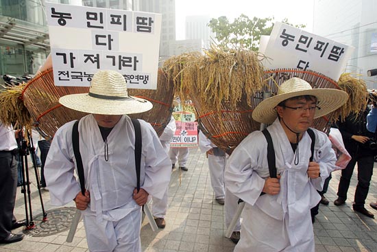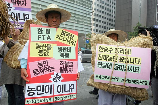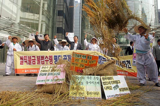17일 낮 12시 청계광장에서 전국농민회총연맹과 전국여성농민총연합 소속 회원 10여명은 쌀직불금 불법수령 명단공개와 처벌을 촉구하며, 한승수 국무총리와의 면담을 위해 정부중앙청사까지 지게에 볏집과 쌀가마니를 지고 행진을 시도했다.