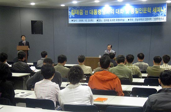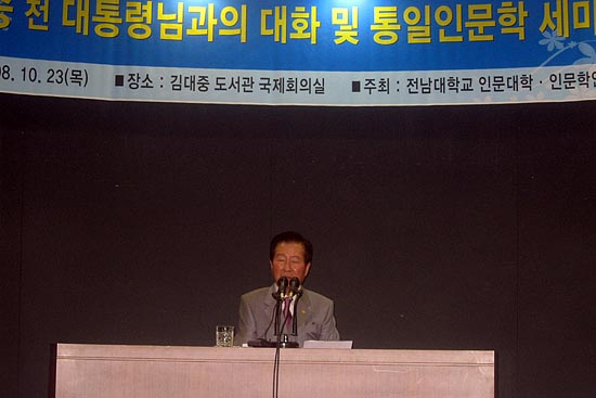 이들은 강의가 끝난 뒤 김 전 대통령과 기념촬영을 하고 '인문학이 어떻게 남북의 화해와 평화통일에 기여할 수 있는가', 'W.브란트의 문화민족 개념과 남북문제', '통일 시대를 위한 국어 관련 및 문제'등의 주제로 통일인문학 세미나를 진행했다.