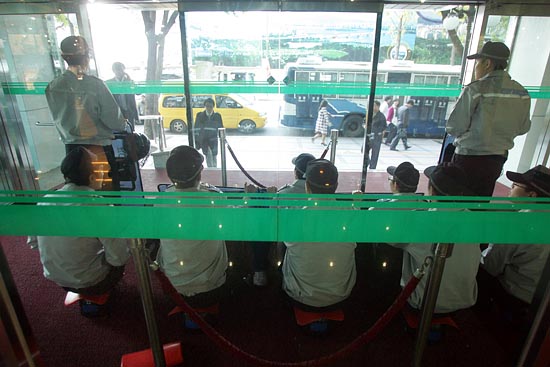 1층 로비에는 서감재단 비리척결과 생활인 인권확보를 위한 비상대책위원회 소속 장애인 회원 5명이 화장실을 사용하겠다고 들어왔지만, 이후 안에서 고립돼 나가지 못하고 있는 상태이며, 건물 밖에 있는 5~6명의 회원들도 안으로의 출입이 통제된 상태이다. 이들은 모두 휠체어를 탄 장애인들이다.