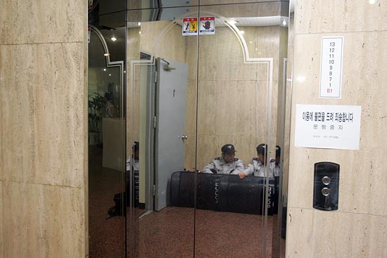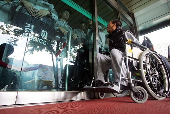 이날 오전 11시 30분경, 경찰은 서울 중구 국가인권위원회 지하 1층과 1층 로비, 6층 계단 일부에 병력을 갑자기 배치했고, 정문을 비롯, 건물 내부로의 출입할 수 있는 출입문을 모두 통제했다. 전 층(13층)을 사용할 수 있는 엘리베이터의 운용도 차단됐다. 휠체어를 탄 장애인들의 이동을 막기 위해서다.