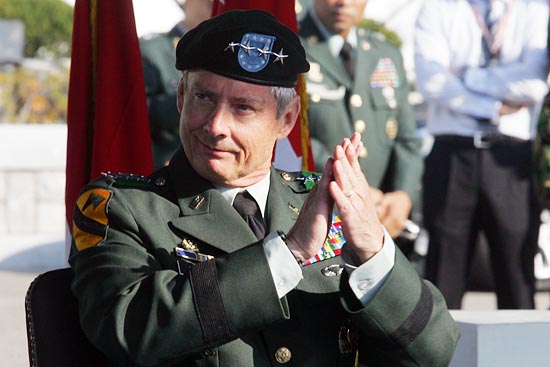 2012년 해체를 앞둔 한미연합군사령부(연합사)가 창설 30주년을 맞아 용산 미군기지 나이트필드에서 13일 기념식을 가졌다. (왼쪽부터)월터 샤프 연합사 사령관, 이상희 국방부 장관, 이성출 부사령관. [사진-통일뉴스 조성봉 기자]