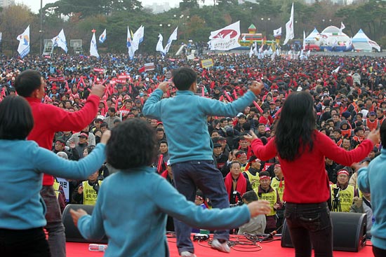 22일 오후 2시 30분, 서울 여의도 여의도공원 문화마당에 전국민주공무원노동조합, 전국공무원노동조합, 공무원노동조합총연맹, 전국교직원노동조합, 법원공무원노동조합, 전국광역자치단체공무원노동조합 등 5만여 명이 운집한 가운데 '11.22 공무원.교원.공공부문 노동자 총궐기 대회'가 열렸다.
