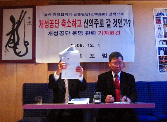 남북포럼은 이날 자료를 공개하면서 "북한은 현 정부의 합의사항 불이행으로 현 정부 임기 동안에는 대남 경협 의존도를 최소화하면서 한편 대중 의존도는 높이고, 아울러 북-미, 북-일, 북-유럽, 북-러 경협관계를 촉진시키려는 근중원남(近中遠南) 전략을 계획 중"이라면서 "북한의 '신의주+위화도 특구' 개발 올인으로 개성공단의 축소 및 전면 재검토 가능성이 높다. 남북은 조속히 입장을 밝혀 더 이상의 기업 피해를 막아야 한다"고 촉구했다.