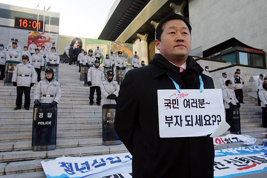이명박 대통령은 경제대통령이 되겠다고 국민들과 약속했다. 그 약속을 1년도 안되어서 잊어버린건 아닐까? [사진-통일뉴스 조성봉 기자]