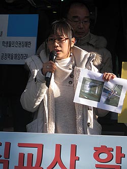 미류 인권운동사랑방 활동가는 "전교조 선생님들이 일제고사를 강요하거나 공정택이 얘기하는 교육을 아이들에게 강요했다면 마지막 수업을 받는 아이들이 그렇게 울지 않았을 것"이라며 해직.파면된 교사들이 죄가 없음을 강조했다.