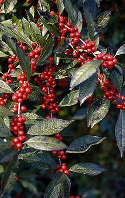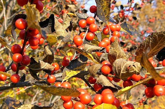 낙상홍(落霜紅)은 일본 원산의 갈잎좀나무(落葉灌木). 키는 2~3미터 높이로 자라며 공원이나 녹지 등에 조경수로 심는다. 잎은 길둥근꼴로 어긋나고 양면에 털이 있다. 꽃은 6월 경 새로 자란 가지 잎겨드랑이에 모여서 피고, 가을에서 초겨울에 걸쳐 익는 씨열매(核果)가 매우 아름답다.