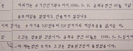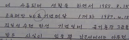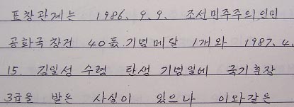 ▷ 그런데 김현희는 ‘조국해방40돌 기념 공로메달’을 다른 진술에선 수차례에 걸쳐 ‘공화국 창건 40돌 기념 공로메달’이라 하여 검찰신문과정에서 문제로 거론되기도 함. (수사기록718쪽-2회자필진술서, 수사기록931쪽-2회신문조서)