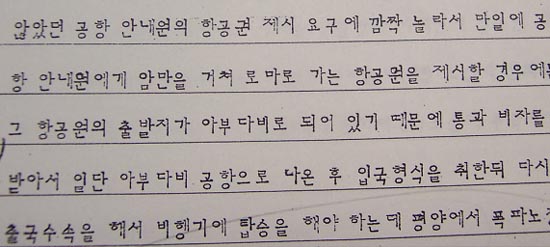 11-2. 김현희는 또 위의 이유에 덧붙여, 아부다비→암만→로마행 항공권은 출발지가 아부다비이기에 아부다비 입출국 과정을 거쳐야 하는데, 일본여권으론 입국비자를 받을 수 없고 ‘통과비자’ 밖에 받을 수 없었기 때문이라 진술함. (수사기록882쪽-4회자필진술서, 수사기록3033쪽-12회자필진술서)