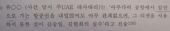 ▷ 의심받을 이유가 없음. 아부다비에서 출발하는데, 아부다비출발 항공권만 있으면 그 뿐 더 이상 문제될 것이 전혀 없음. 이는 당시 UAE 주재 대리대사 류시야 참사관도 인정함. (국정원종합보고서 292쪽)
