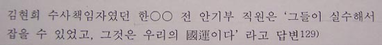 ▷ 김현희 수사책임자였던 안기부의 한○○는 김현희, 김승일이 아부다비→암만→로마 행 티켓을 사용하지 않은 것에 대해 ‘그들이 실수해서 잡을 수 있었고, 그것은 우리의 국운(國運)이다.’라고 답변함. (국정원종합보고서 292쪽)