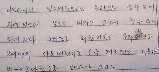 ▷ 그런데 주목되는 점은 앞서 검찰조서에서 확인했듯이, 검찰과 법정에선 다시 초기 진술 내용을 반복한다는 점임. 이는 김현희의 여타 부분 진술에서도 허다하게 발견되는 문제인데, 마치 수정된 내용을 확실히 인지하지 못하고 원안(原案)만을 따르는 듯이 보아짐. 한마디로 진술 내용이 스스로의 경험에 의존하는 게 아니라, 타의에 의해 주어진 것이 아닌가 하는 큰 의혹을 남기고 있다는 것임.