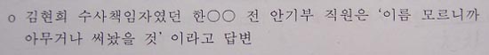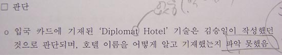 ▷ 두 김의 디플로매트 호텔 사전 인지 사유에 대해 조사하지 않은 당시 안기부의 김현희 수사책임자는 ‘아무거나 써놓은 이름일 것’이란 황당한 답변을 함. (국정원종합보고서296쪽)