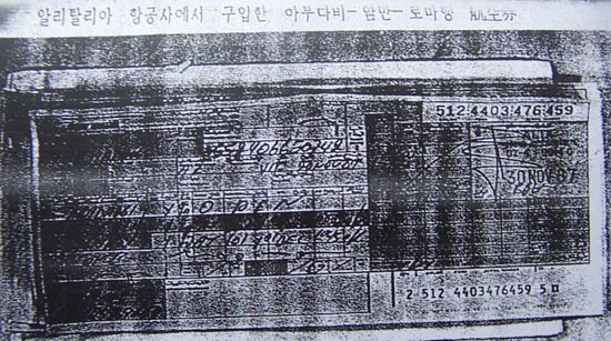 ▷ 그럼에도 법원의 압수품 목록과 바레인보고서엔 이미 교환되어 없어야할 ‘아부다비→암만→로마‘행 항공권이 존재하는 반면에, 새 항공권인 ’바레인→암만→로마‘행 항공권은 존재하지 않음. (수사결과자료39쪽, 바레인보고서8항, 수사기록상의 압수품 목록)