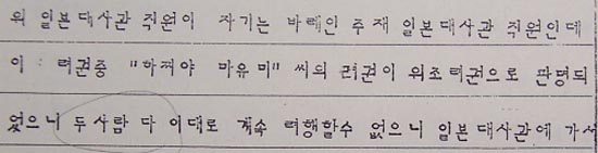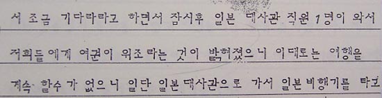 ▷ 그런데 김현희는 앞서의 안기부 신문에서 자신의 여권만이 위조로 밝혀졌다고 진술한 바 있음. 여기서 김현희 진술의 특징을 다시 엿볼 수 있는데, 초기 진술에선 ‘2인 모두’, 그러다 ‘자신의 여권만’, 위 검찰조서엔 또 다시 ‘2인 여권 모두’라는 번복의 과정을 거침.