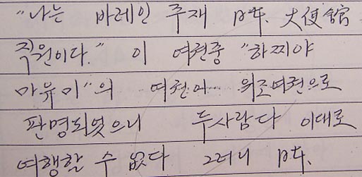 ▷ 바레인보고서와 달리, 당시 바레인 당국은 ‘하치야 마유미’의 음독 사실을 인정하지 않음. (김정기 서기관 자필진술서)