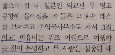 ▷ 바레인보고서는 한편으로 “(적어도) 마유미는 위조여권으로 여행하는 것이 분명하고 …”라고 따로 기재하여, 보고서 기재내용만으론 출국저지 당시 위조여권 소지자 및 출국저지 대상자를 명확하게 확인해주지 못함. (바레인보고서37항)