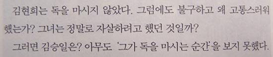 ▷ 그러나 모든 정황은 김현희의 음독 사실을 인정하지 않음.
