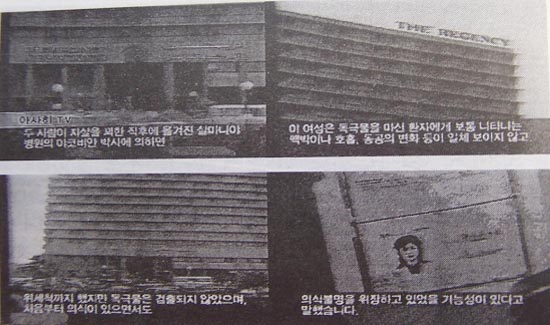▷ 어쨌든 음독사건은 국제사회로 하여금 KAL858기 실종의 원인이 폭탄테러라는 심증을 굳히게 한 결정적 계기가 됨.