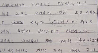 13-3. 중국 보통어와 광동어에 능통하다는 김현희의 진술에서 현대 중국의 간체자를 찾아보기 힘들며, 오히려 간체자 등장 이후 일상에서 사용하지 않는 한자가 발견됨.