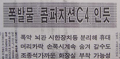 ▷ 역시 이 시점에 전혀 알 수 없는, “폭발물은 베오그라드에서 동양인으로부터 건네받은 것이며, 바로 콘포지션4이다”라는 보도도 있음. (경향신문1987.12.2자 3면, 서울신문1987.12.2자)