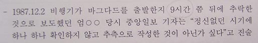 - “경찰, 대한항공, 외무부 등에 의존하다 보니 그런 기사가 나왔을 것이다.” (국정원종합보고서252쪽)
