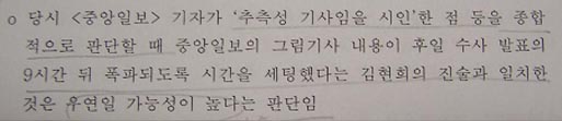 - 당시 중앙일보의 기사작성자인 엄○○ 기자는 국정원과거사위와의 면담에서 “추측성 기사였다”고 밝혔으나, 어떻게 이런 추측이 가능했는지 의문임. (국정원종합보고서255쪽)