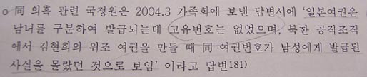 ▷ 그런데 일본여권은 여권번호만으로 남녀를 구별할 수 없음. 이는 2004.3 국정원이 KAL858 가족회에 보내는 답변서에서도 인정한 것임. (‘국정원의 가족회에 보낸 답변서’28쪽)