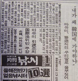 6-3. 한국 측으로의 신병인도 직전 상황을 전하는 한 언론보도엔 “잔뜩 겁을 먹은 표정의 하치야 마유미(김현희)는 ‘내가 왜 한국에 가야 하느냐?’며 우리말로 울부짖었다“고 보도함. (조선일보1987.12.17자 9면)