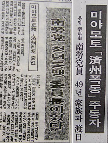 ▷ 이경우에 대한 언론보도의 핵심내용은, “이경우는 제주도 한림읍 금릉면 출신으로 ‘남로당 청년동맹위원장’을 지내면서 4․3폭동의 주동자로 활동하다 도일한 인물”이라는 것임. (조선일보1987.12.4자 1면)