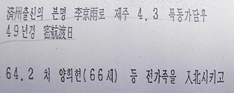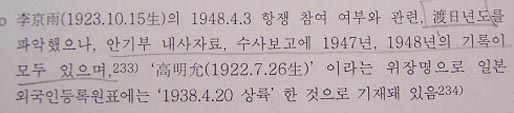 ▷ 이경우는 “일제하에 일본으로 건너간 뒤 해방정국엔 국내에 없었고, 4.3사건 및 좌익 활동과 아무런 상관이 없었음”이 드러남. (KBS스페셜 취재내용. KBS‘열린채널’)