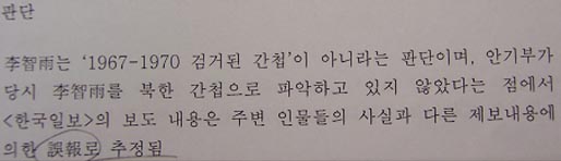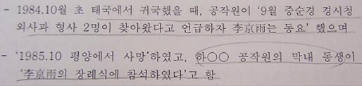 ▷ 이러한 내용에 더하여, “이경우의 형 이지우는 1970년경 간첩단 관련으로 체포된 인물”이라는 내용이 잇달음. (조선일보1987.12.4자 1면)