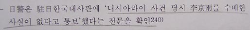 ▷ 니시아라이 사건은 실상 전모가 모호한 사건인데, 그렇듯 어떻듯 실제 이경우가 일본경찰에 수배 중이라는 보도는 모두 사실이 아니었음. (‘파괴공작’)