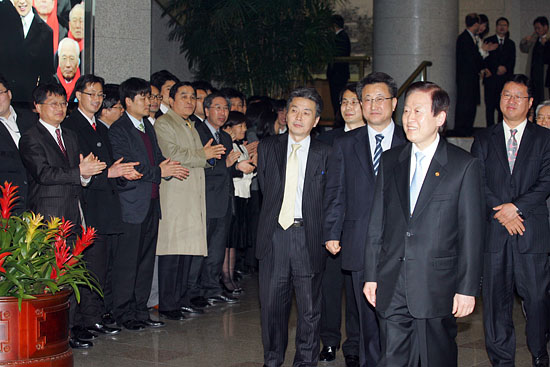 11일 오후 5시 15분 김하중 통일부 장관은 서울 도렴동 정부종합청사 별관 2층 강당에서 진행된 이임식에서 참석한 통일부 임직원들에게 “참 고생 많았다”며 이같이 말했다.
