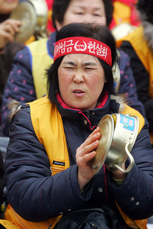 민주노총은  2천여명의 노동자, 시민들과 함께 14일 오후 3시 30분,  '비정규직-최저임금 노동자 생존권과 노동기본권 요구 노동자 결의대회’를 가졌다.[사진-통일뉴스 조성봉 기자]