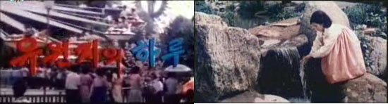 ▲ 예술영화 <유원지의 하루>(1978) : 젊은 남녀의 맞선을 놓고 두 가정이 대성산유원지에서 즐거운 하루를 보내는 과정을 코믹하게 그린 영화로 기옥이가 유원지 냇가에서 손을 씻는 장면. [자료사진-유영호]