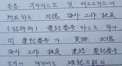 2-5. 김현희의 진술에 의하면, 1987.11.17 비엔나로 향하기 하루 전 저녁, 부다페스트 주재 전 지도원이 넘겨준 쪽지의 전화번호를 자신이 직접 수첩에 암호형태로 기재했다고 함.