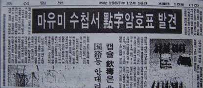 2-4. 암호수첩의 존재는 김현희가 서울로 이송된 다음날 갑자기 나타남. (조선일보1987.12.16자 10면)