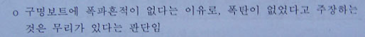 ▷ 그런데 이 중요한 증거물은 감정을 거치지 않고, 법정증거물로 채택됨. 감정을 거쳐야 과연 폭발에 의한 것인지, 또 폭발에 의한 것이라면 폭발물의 종류가 무엇인지 등을 확인할 수 있었을 것임.