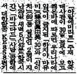 ▷ 서울신문은 야카베 마유미의 인수증을 지면에 실었음. (서울신문1987.12.4자 3면)