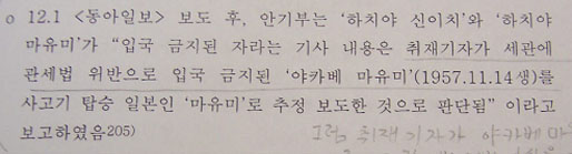 ▷ 국정원종합보고서는 ‘야카베 마유미’가 1984.11 한국 당국으로부터 1,000만 엔의 벌금형을 받고 한국입국 금지자 리스트에 올랐다고 함. (국정원종합보고서321쪽)