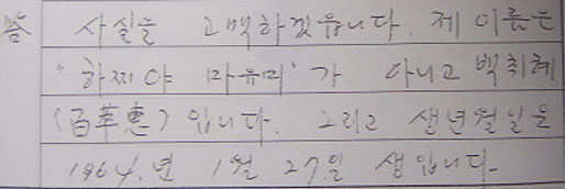 6. 자신의 이름이 ‘백취혜’라고 밝힌 김현희의 초기진술에 대해